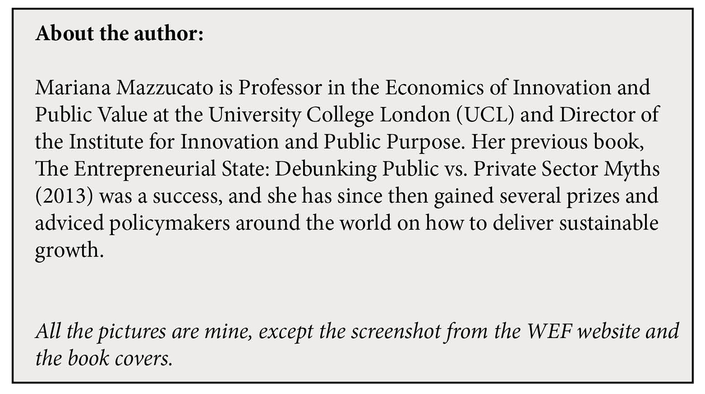 With this book she is opening this dialogue, by showing that the creation of value is collective, that policy can be more active around co-shaping and co-creating markets, and that real progress requires a dynamic division of labour focused on the problems that twenty-first-century societies are facing.