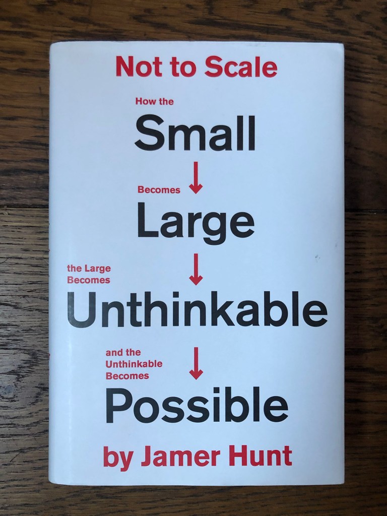Jamer Hunt talks about scale, and about how it effects our life. The full title of the book is: Not to Scale. How the small becomes large, the large becomes unthinkable, and the unthinkable becomes possible. I think that says it all.